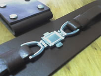 Pueden apreciar que es completamente funcional. Este tipo de hebilla es utilizado para decorar zapatos y son llamados estribos. El color y la textura del cuero son los mas acertados que he podido conseguir. Solo falta el perno que sostiene toda la hebilla junta, pero los removí para que puedan apreciar que las aletas son móviles.